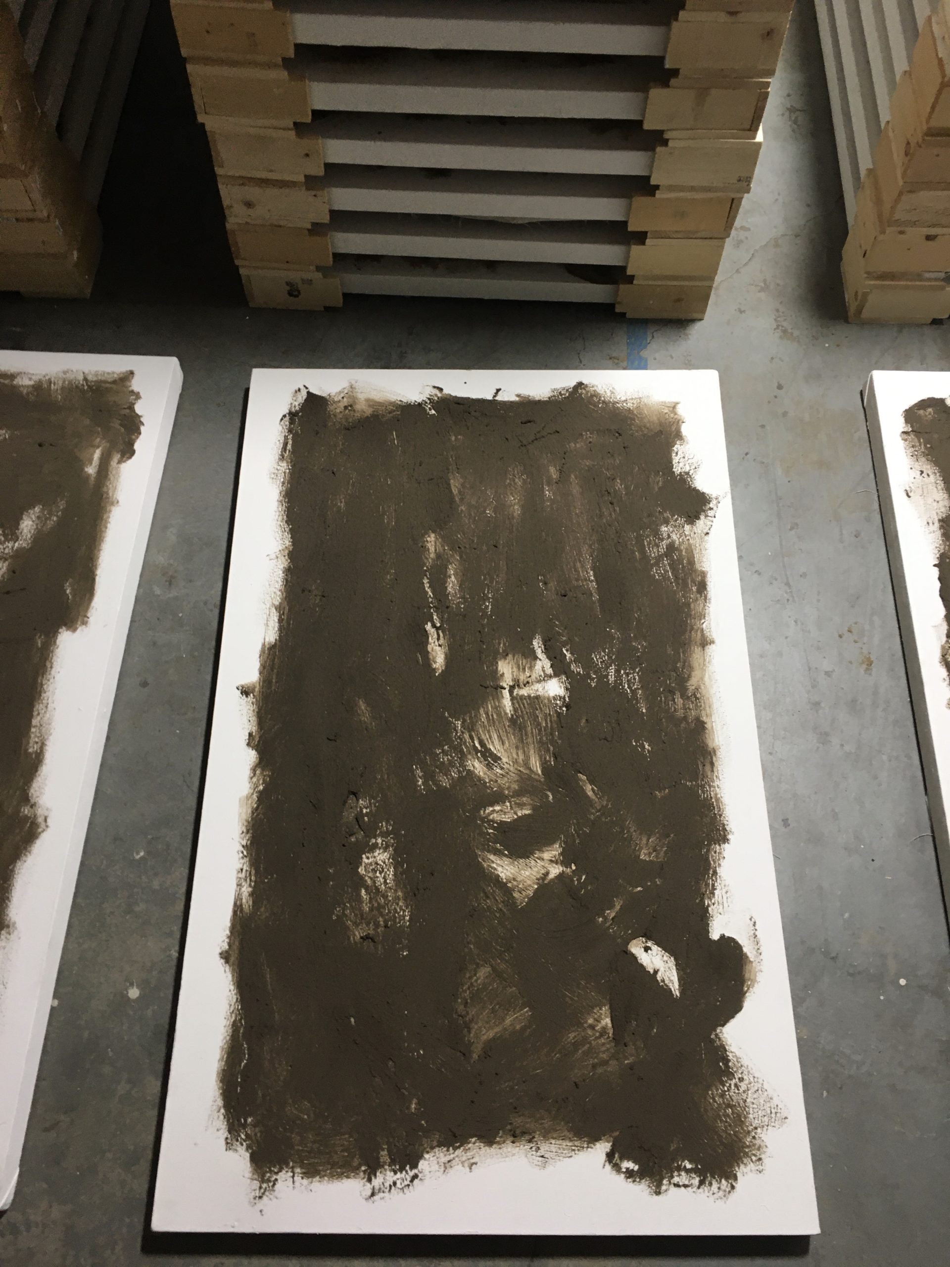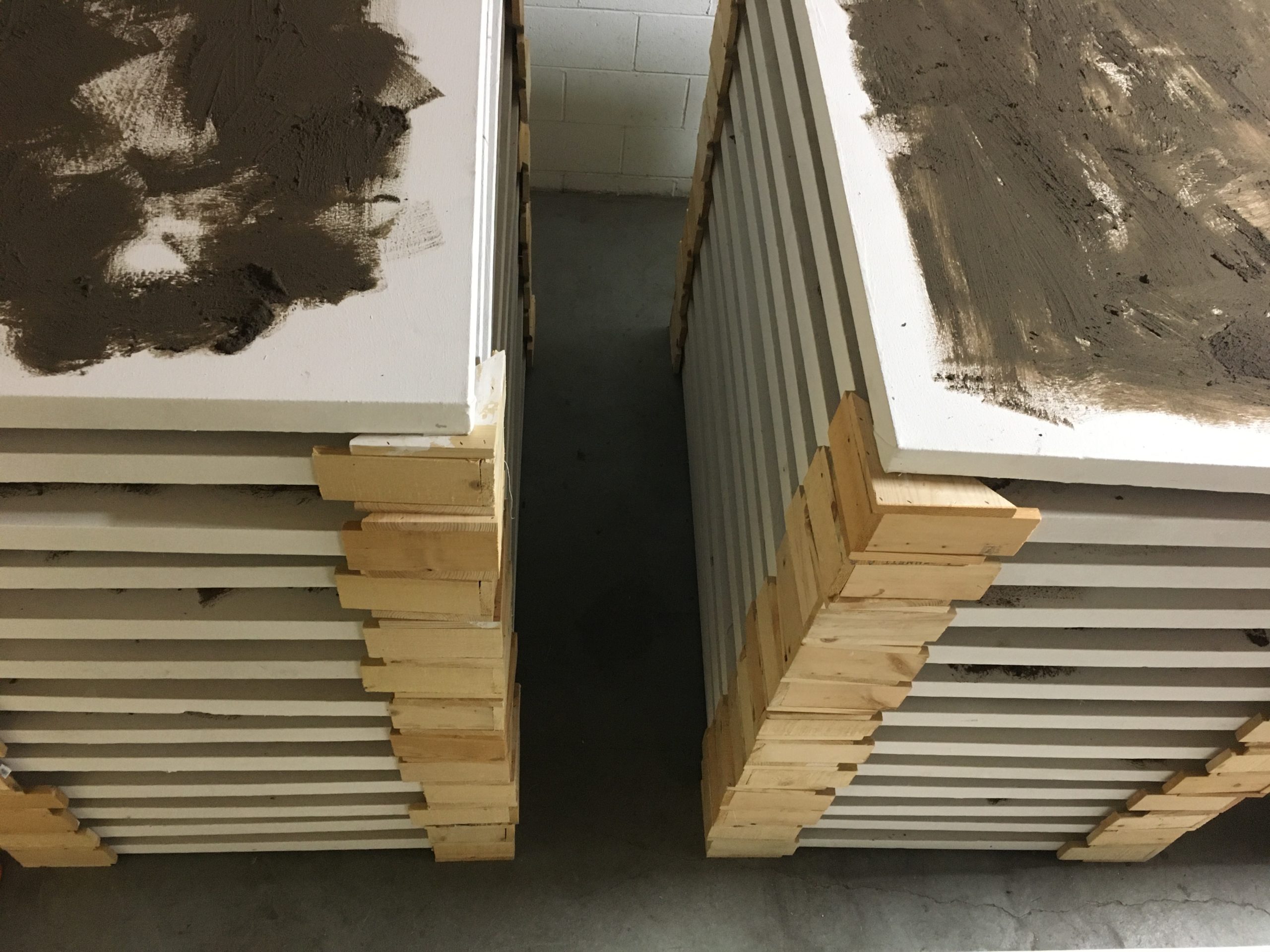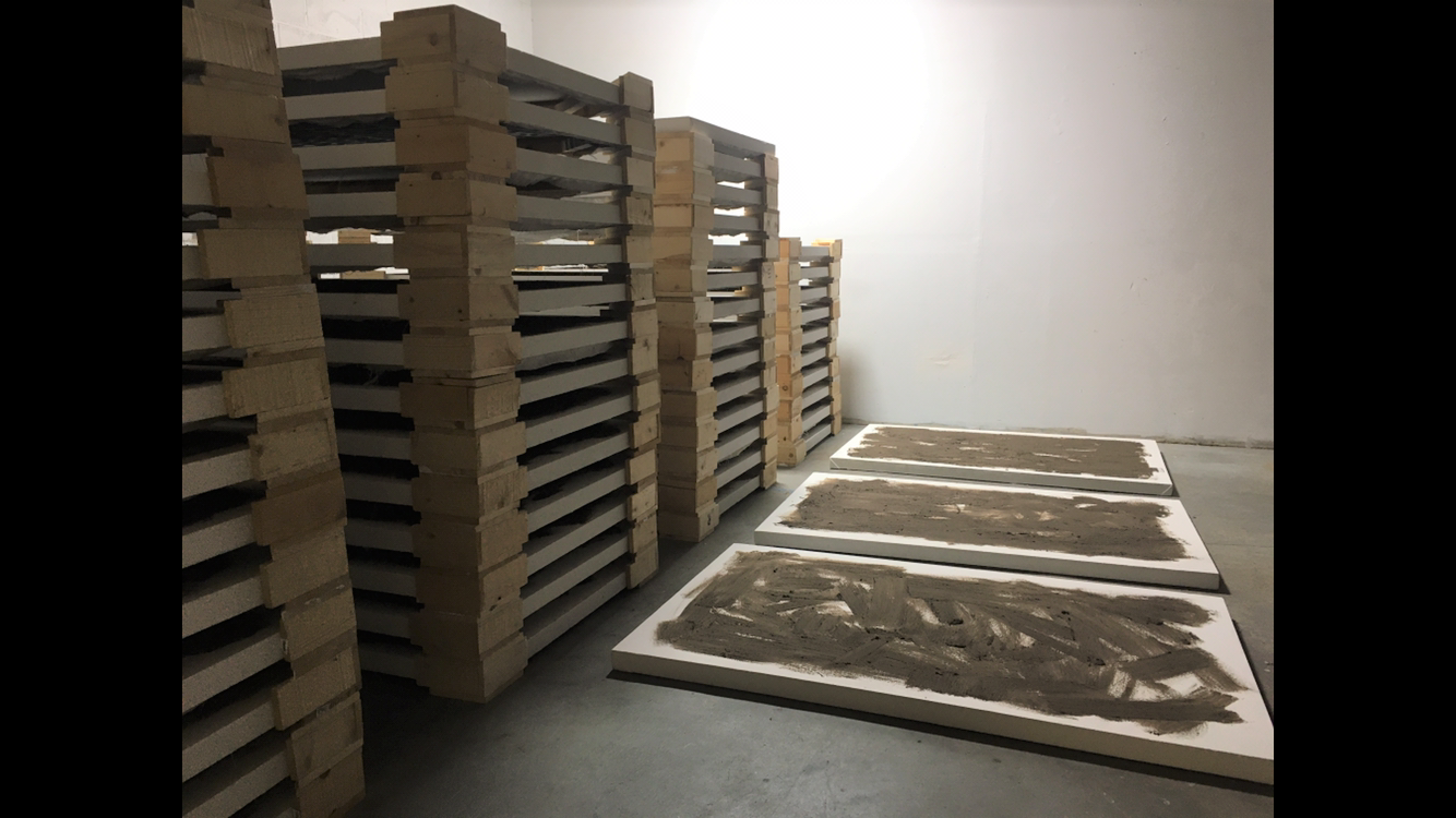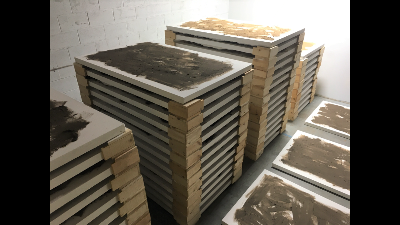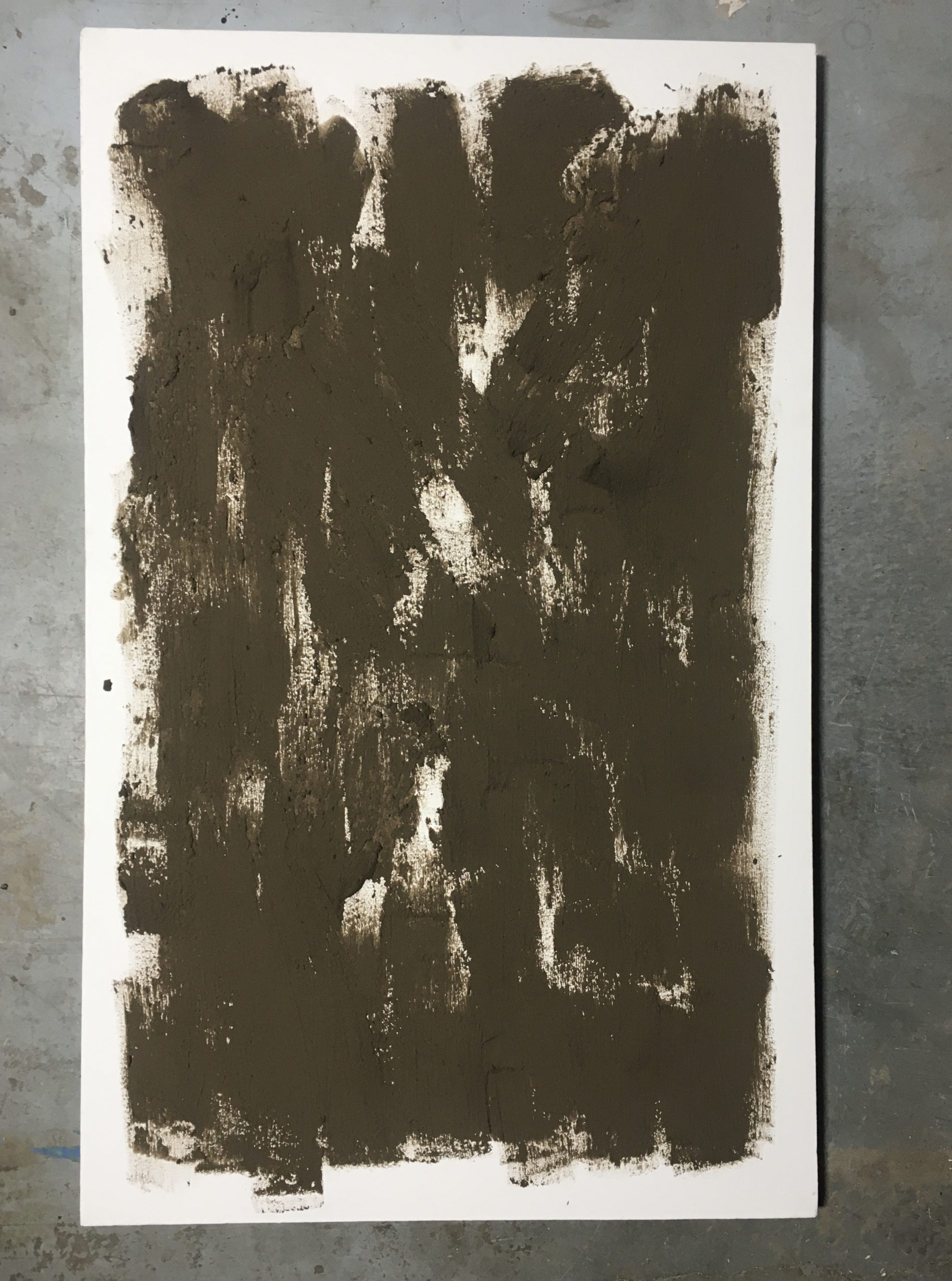 Each of the fifty-six “landscapes” in this work represents an instance of homicide that occurred locally within Los Angeles during the month of March 2019, one year before the global pandemic began (as listed on the LA Times Homicide Report page). In exhibition, these paintings lay across a floor, dispersed within a few feet of each other, where a visitor to the space may physically navigate their number, from one side of the room to another. The contemplative visceral experience of walking through a physical enumeration of mortality is presented in consideration of the alternate navigation of mortality which occurred during the pandemic, announced through digital media, en masse and momentary.